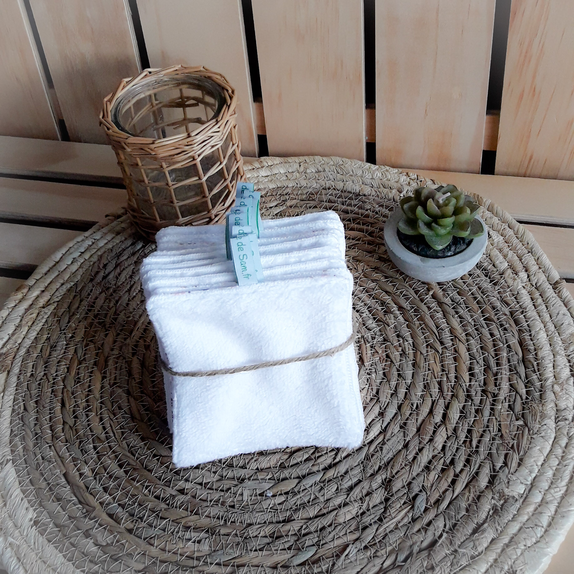 - Taille (environ) : 10 x 10 cm. Possibilité de les personnaliser dans la rubrique : https://www.lafabriquedesam.fr/product/lingettes-demaquillantes-personnalisables/